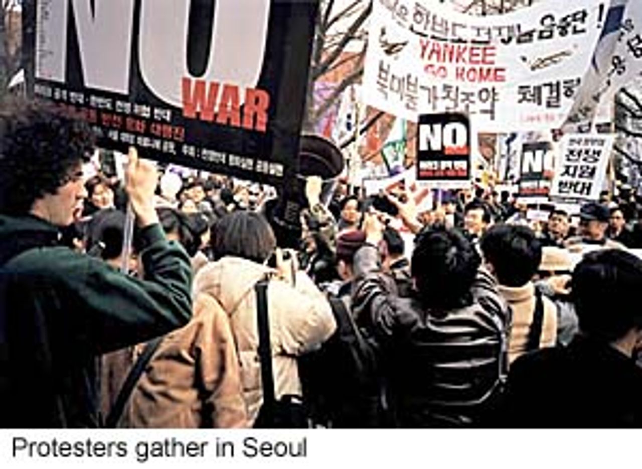 Other antiwar protests took place in the South Korean cities of Pusan, Taegu, Taejon, Kwangju and Wonju.