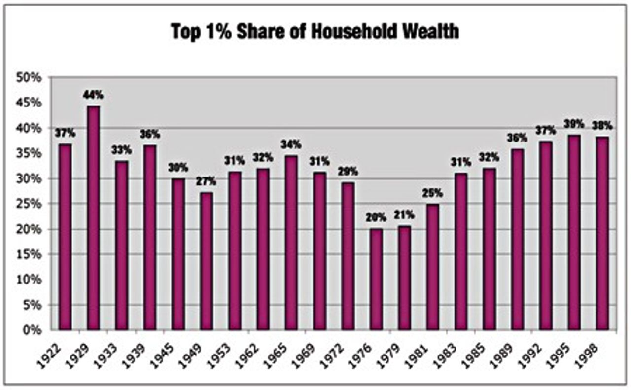 The results are reflected in the steadily rising share of national wealth accruing to the richest 1 percent.