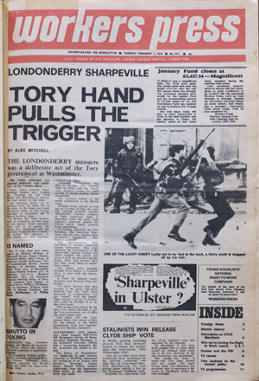 The British Trotskyists opposed the sending of troops to Northern Ireland and conducted vital work exposing the crimes carried out on Bloody Sunday and outlining the revolutionary political tasks confronting the British and Irish working class. The following articles illustrate this principled record, in contrast to the rank political opportunism of the Stalinist and fake left groups such as International Socialism, forerunner of the British Socialist Workers Party, and the International Marxist Group, affiliated to the Pabloite United Secretariat.