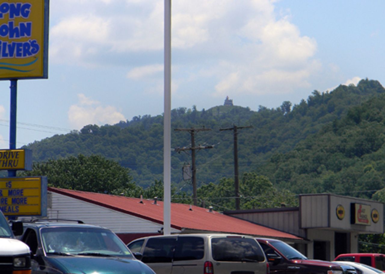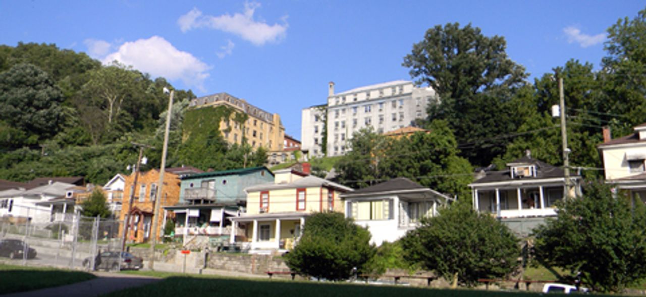 A section of downtown Williamson. At the top of the hill stands the former hospital.“This has always been a booming town, with coal and the railroad, and we have two hospitals.” Other residents pointed out that the Hubbard Motor Company was just across the street, and noted that the town once had nightclubs, and a tea room. “We had four theaters, and a drive-in theater.”
