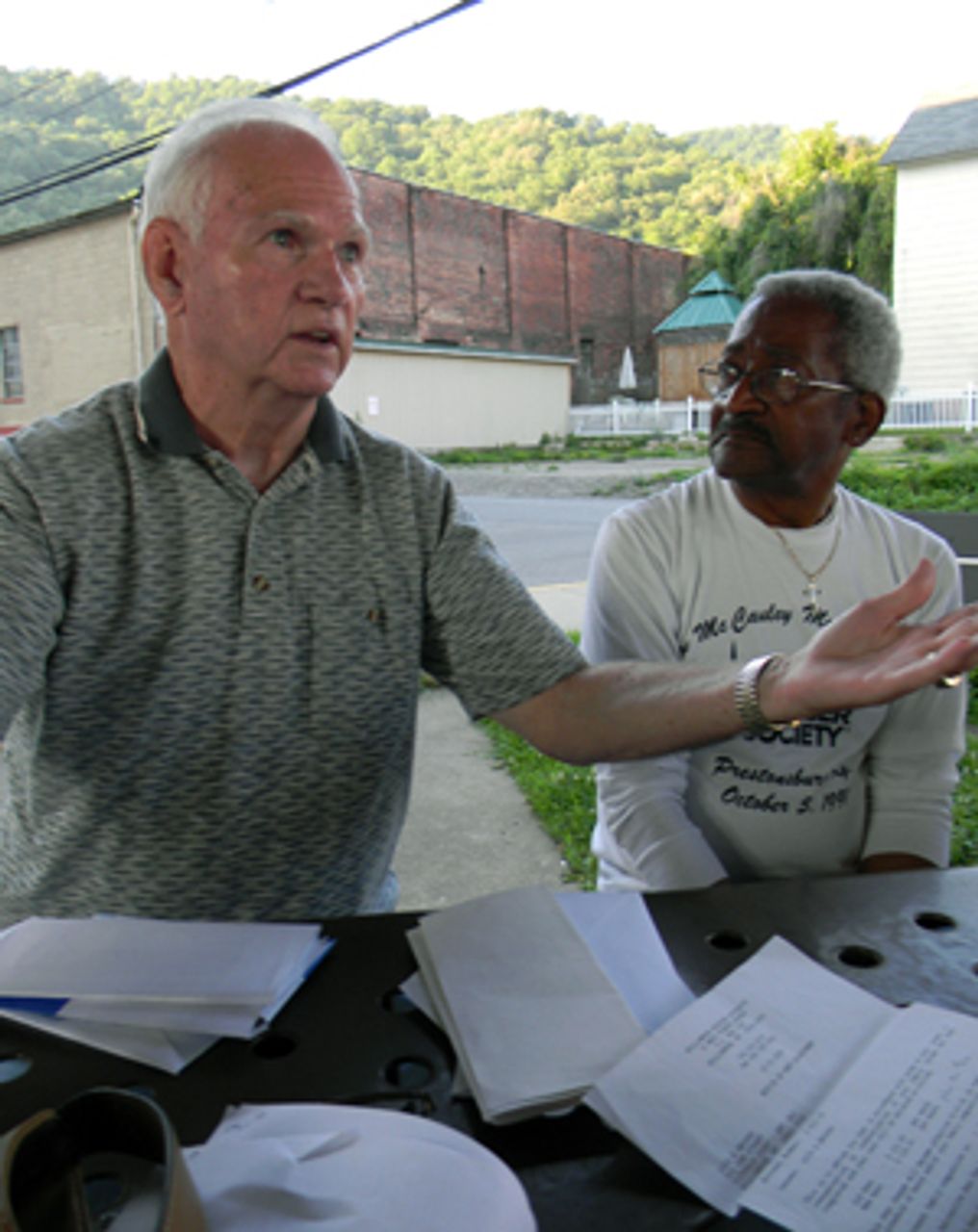 Ernie BrooksErnie Brooks, a former coal miner, added, “The mayor, the governor, the legislators, they don’t have an interest in this town. They don’t put money in it, and it’s falling down. The Williamson Daily News doesn’t talk about anything in our lives. They only echo what the politicians and the coal companies want them to say.” Holding up a copy of the paper, residents pointed out a banner at the top. “Now what does it say?” Ronald asked. “‘In the heart of the trillion dollar coalfields.’ It used to be the billion dollar coalfields, but it’s the trillion dollar coalfields now.