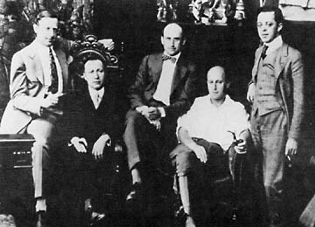 1916 publicity photo for the takeover of Paramount Pictures. (L to R) Jesse L. Lasky, Adolph Zukor, Samuel Goldwyn, Cecil B.