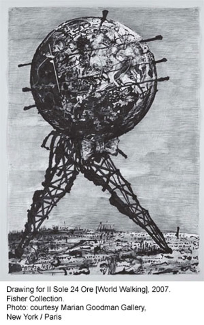 They are nowhere to be found in Kentridge’s work. Instead he has turned his attention to creating fanciful mechanical theaters that perform Mozart’s “The Magic Flute.”