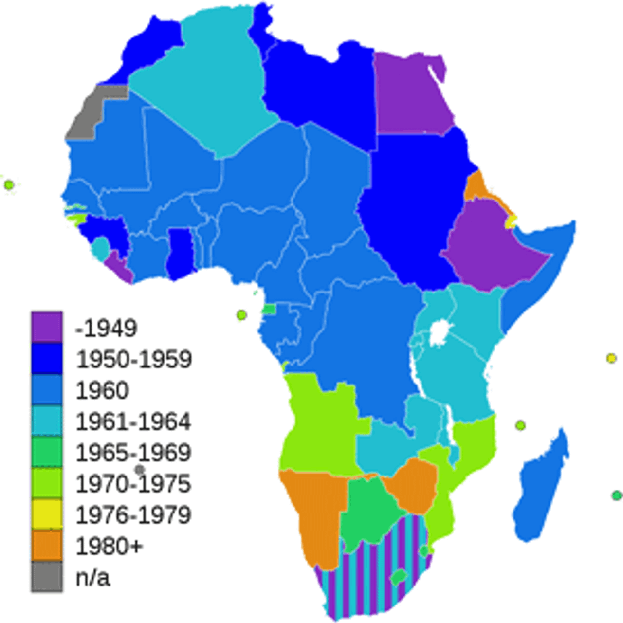 African decolonizationWith its control over the Congo slipping and mindful of the disaster gripping its neighbor France in Algeria, Belgium agreed at conference held in Brussels beginning January 18, 1960, to recognize the independence of its prized imperial possession. This was to take place at the end of June, after national elections to be held in May. The Belgians were compelled to release Lumumba from prison to attend the conference because his party had gained the most votes in local elections held in December, 1959. In one year less a day, he would be gunned down by Belgian assassins.