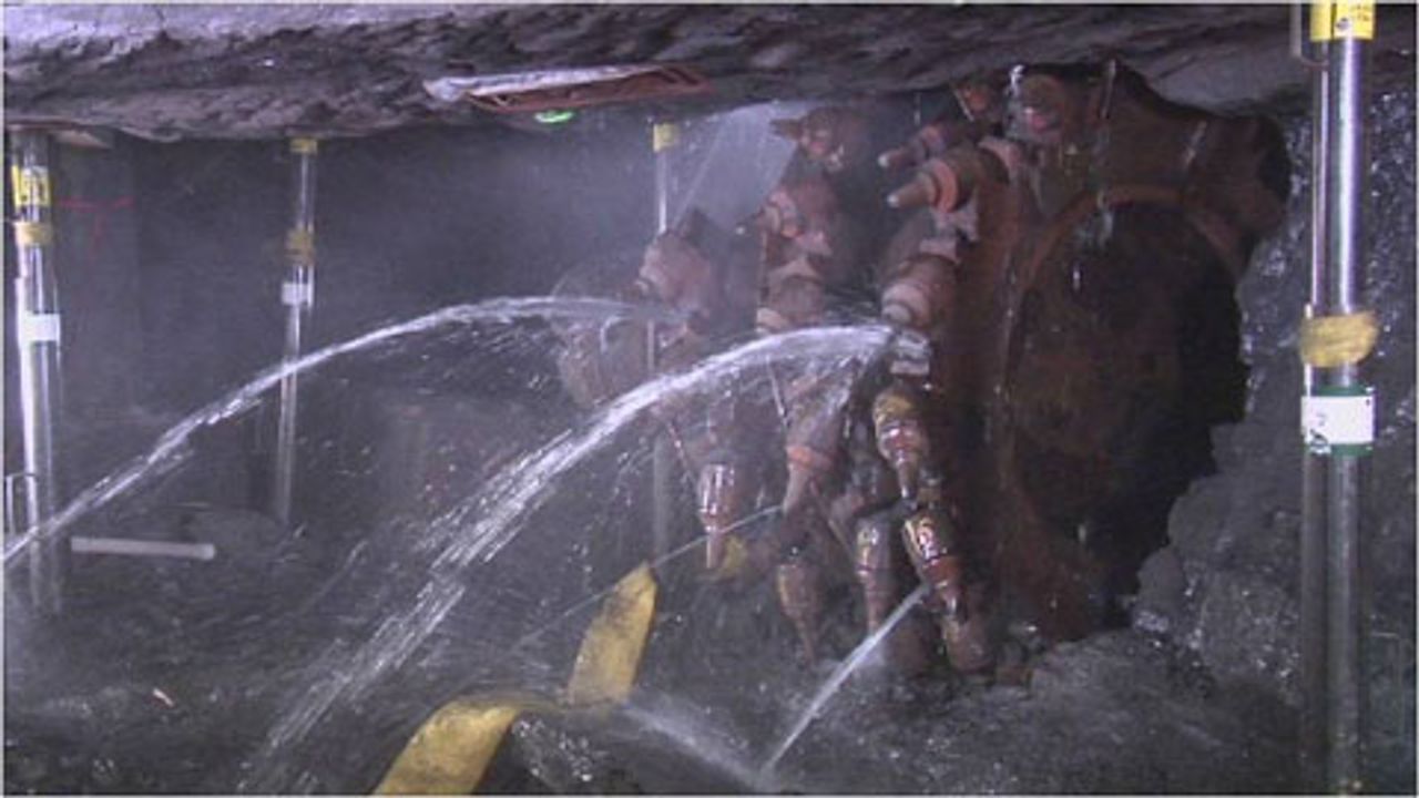 Next to each bit on the shearer, a water sprayer is attached to spray water onto the bit and coal as it digs. The water helps to keep the bits cool, keep down coal and rock dust and extinguish any sparks that come off the bits. Tests on the sprayers show that many were not working, some having been removed or purposefully blocked.