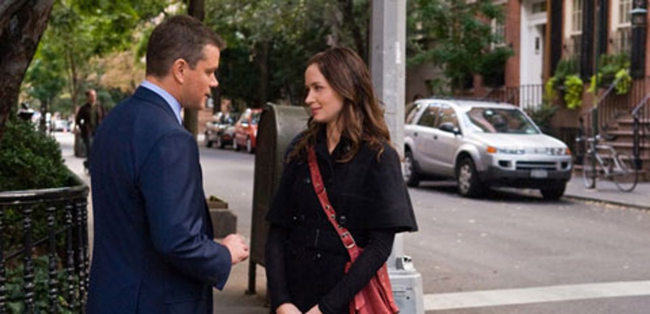 In Nolfi’s film version, David Norris (Matt Damon) is a relatively youthful, up-and-coming politician, a candidate for the US Senate in New York. As the result of some embarrassing revelations, he ultimately loses his election bid. While preparing his concession speech, he meets Elise (Emily Blunt), a young woman with an unconventional, breezy manner. Their encounter is interrupted before he finds out anything about her.