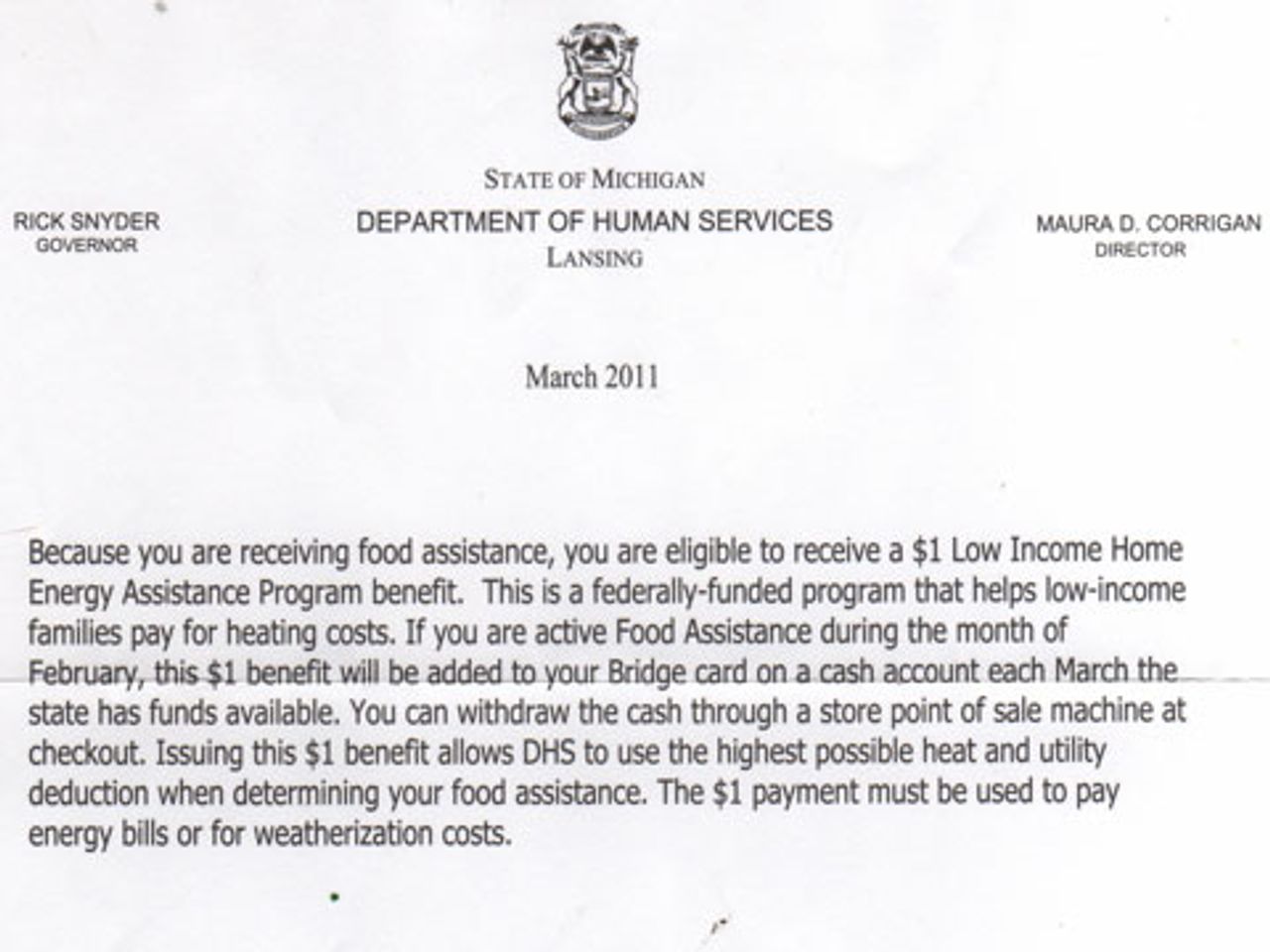Letter from Michigan Department of Human Services to Sylvia YoungPeople are going to get together to protest. The money is going to the rich and for wars in Iraq, Afghanistan and now Libya.
