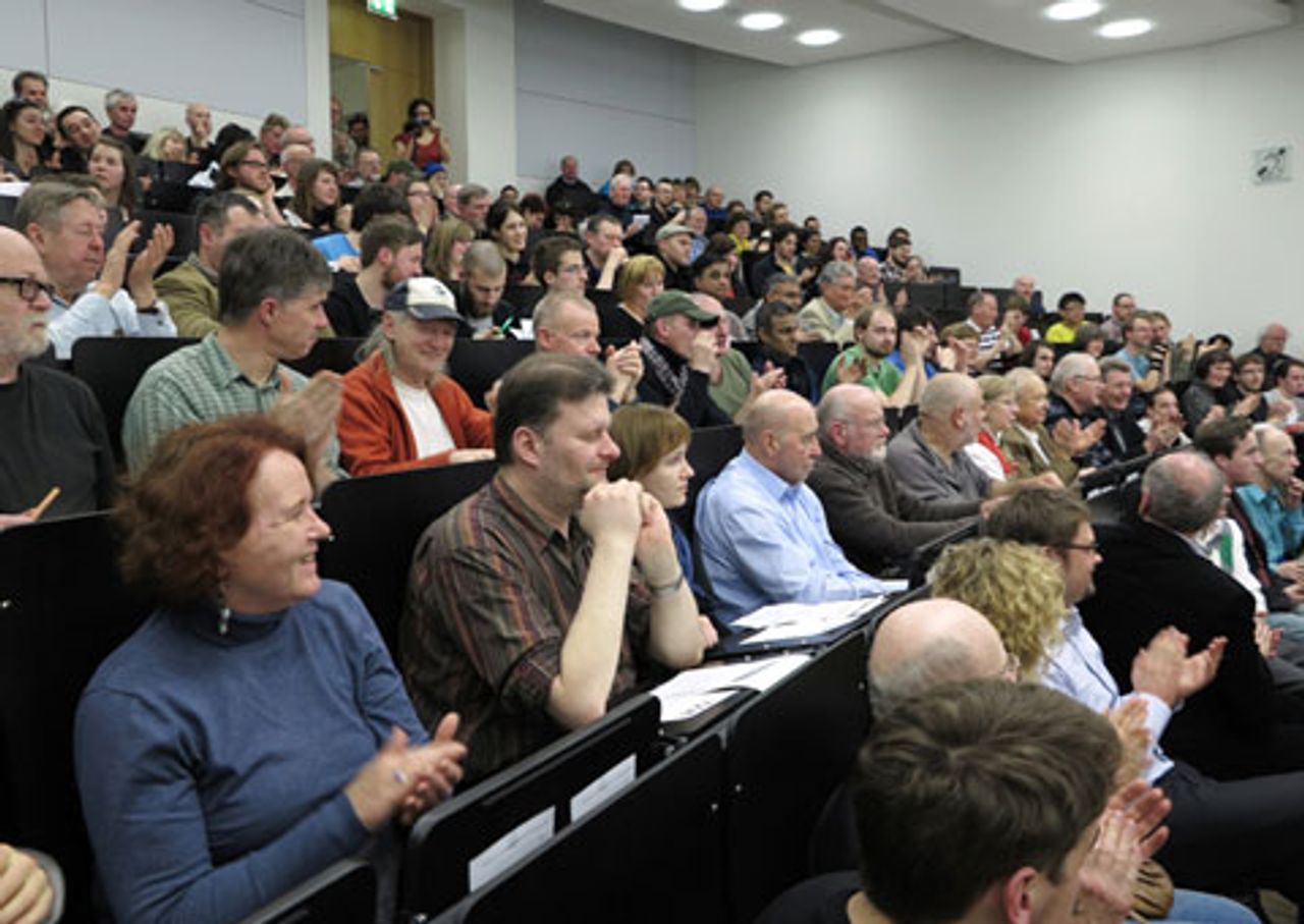 This was reflected in the turnout at Friday’s meeting, organised by Mehring Publishers in cooperation with the Socialist Equality Party of Germany (Partei für Soziale Gleichheit—PSG) and the International Students for Social Equality (ISSE). More than 300 people packed the lecture hall where the meeting was held.