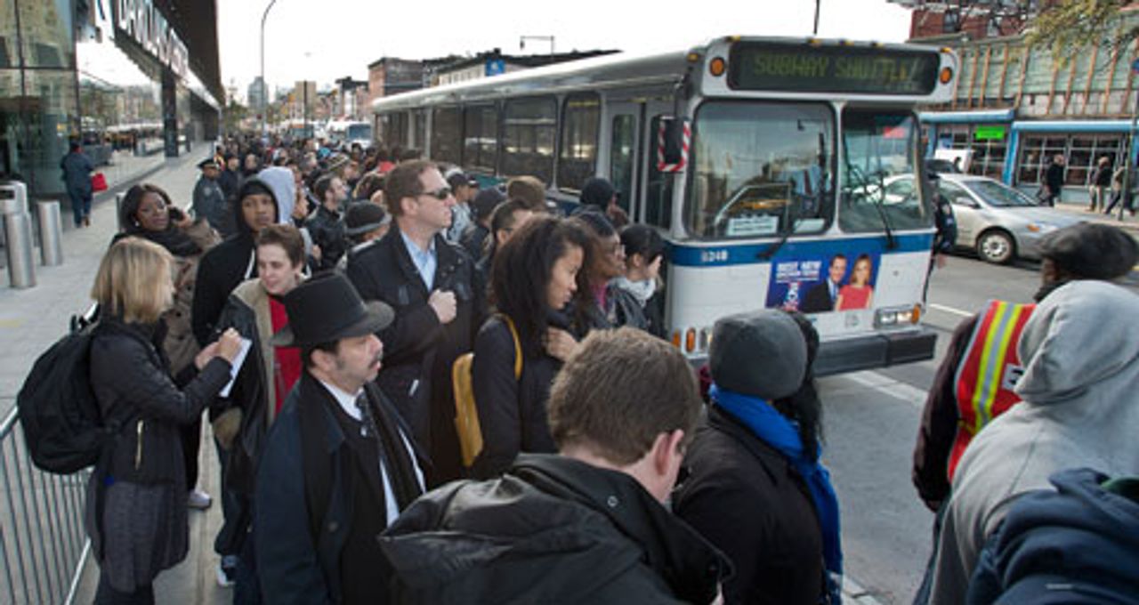 Commuters seeking to get into Manhattan on MTA shuttles as subway tunnels remained shut down [Photo: MTA Patrick Cashin]More than 4.5 million people remain without power, stretching as far north as Maine and south to North Carolina. This includes about 2.5 million people in metropolitan New York. In New York City, utility giant ConEd said the 228,000 without power in Manhattan should have it back by Saturday, leaving another 400,000 elsewhere in the city in the dark. The company estimated that some New Yorkers would not have power back until November 11, some two weeks after the storm hit.