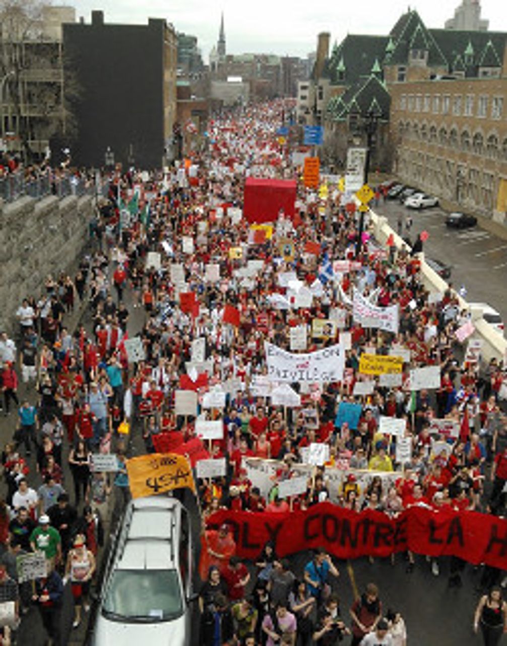 Même s'ils critiquent les dirigeants de CLASSE pour être trop enclins à la conciliation avec le gouvernement, les anarchistes adhèrent essentiellement à la même politique de pression – le rejet de la mobilisation politique indépendante des travailleurs en faveur de gestes d'éclat qui acceptent le cadre capitaliste existant et ne visent qu’à impressionner l'élite dirigeante pour l'amener en fin de compte à la table de négociation.