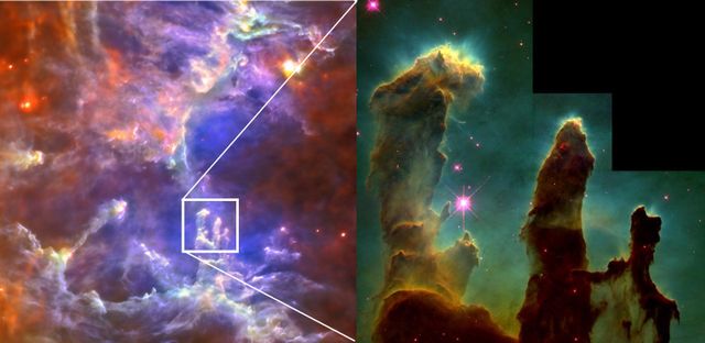 අලූතින් උපන් මන්දාකිනි තාරකා උප්පත්තිය පිලිබඳ ව්යසනකාරී කාලපරිච්ෙඡ්දයක් අත්දුටු ආදි විශ්වය තුල උද්යෝගීමත් ලෙස තාරකා බිහිවූ විශ්මයජනක කාලවකවානුව පිලිබඳ සාක්ෂි අයිආර්ඒඑස් මගින් අනාවරනය කොට ගෙන ඇත. දූලි වලාකුලූ සාමාන්ය ආලෝකය මුලූමනින්ම හෝ ඉන් වැඩි කොටසක් ගිලිහී යාමට නොදී රඳවා ගත් නිසා මේවා ඊට පෙර දර්ශනය වී තිබුනේ නැත.