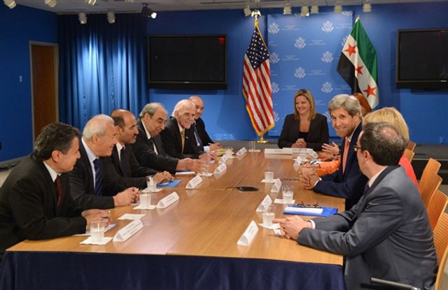 එක්සත් ජනපද මිලිටරිය සඳහා මූලෝපායක් සම්පාදනය කිරීමට උත්සාහ දරන පරියේෂක කන්ඩායමක් වන එම ආයතනය, "ජාත්යන්තර ප්රජාව (එනම්, එක්සත් ජනපදය හා එහි අනුචරයින්) සාකච්ඡාවන්ට පෙරාතුව ගොඩබිමේ බල තුලනය තීරනාත්මක ලෙස වෙනස් කිරීමට යමක් කල යුතුව ඇතැයි” තර්ක කලේ ය. යථාර්තයේදී එක්සත් ජනපදයේ දේශපාලන ඒජන්තයින් වන සිරියානු විපක්ෂයේ නායකයින්, 2013 ජූලි 25දා ජෝන් කෙරී මුනගැසුනහ. පැයක පමන කාලයක් පැවති රැස්වීම අතරවාරයේ ඔවුහු, තත්වය "අවිනිශ්චිත” බවත්, කැරලි පාර්ශවයේ බිඳවැටීම වලක්වා ගැනීම පිනිස එක්සත් ජනපදය කඩිනමින් ක්රියාත්මක විය යුතු බවත් ලේකම් වරයාට දැනුම් දුන්හ.