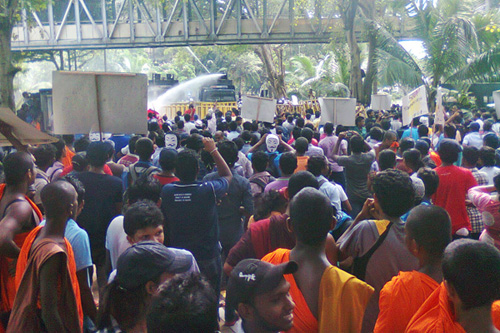 පොලීසිය සිසුන්ට කදුලු ගෑස් හා ජල ප්රහාරයක් එල්ල කරයිජාත්යන්තර මූල්ය අරමුදලේ නියෝග ක්රියාවට දැමීමේ කොටසක් ලෙස අධ්යාපන වියදම් කප්පාදු කොට අධ්යාපනය ආයෝජකයන්ගේ ලාභ ලබන කර්මාන්තයක් බවට පත් කිරීමේ වැඩපිලිවෙලට එරෙහිව ශිෂ්යයන් අතර වැඩෙන විරුද්ධත්වය තලා දැමීමේ ආන්ඩුවේ සූදානම මෙම විරෝධතාවය මැඩීම සඳහා එල්ල කල ප්රහාරයෙන් පෙන්නුම් කෙරුනි. ජල ප්රහාරය පලමුව එල්ල කරනු ලැබූවේ විරෝධතාවය ආවරනය කිරීම සඳහා පැමින සිටි මාධ්යවේදීන්ටයි.