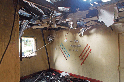 ගින්නෙන් නිවාස විනාශවූ වතු කම්කරුවන් තාවකාලික කුඩාරම්වල