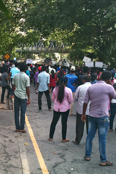 අන්තර් විශ්ව විද්යාල ශිෂ්ය බල මන්ඩලයේ (අවිශිබම) නායකත්වය යටතේ මරදාන ටෙක්නිකල් හන්දියෙන් ඇරඹූ පා ගමන කොටුව දුම්රිය ස්ථානය ඉදිරියෙන් ගමන් කොට ලෝටස් පාර හරහා ජනාධිපති ලේකම් කාර්යාලයට ලඟා වෙමින් සිටියදී මාර්ග බාධක යොදා මග අවහිර කල පොලීසිය සිසුන්ට විසිර යන ලෙස නියෝග කලේය.