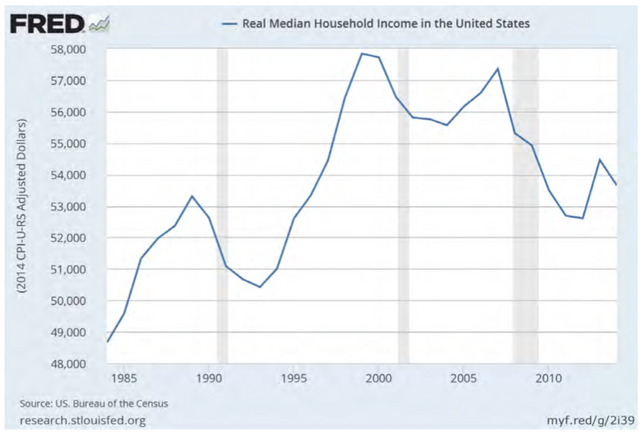 ආර්ථික ප්රතිපත්ති ආයතනයට අනුව, 2002 හා 2015 අතර ඇමරිකානු ජනගහනයේ පතුලේ සියයට 90 වාර්ෂික ආදායම් සියයට 4.5කින් වැඩි වූ අතර ඉහල සියයට 1 ආදායම් සියයට 27කින් වැඩිවුනි. ඔබාමා පාලනාධිකාරය යටතේ ඊනියා “ප්රකෘතිය” ඇරඹීමේ සිට ආදායම් ඉපයුම්වලින් සියයට 90කට වඩා ගොස් ඇත්තේ ඉහල සියයට එකක් අතටය.