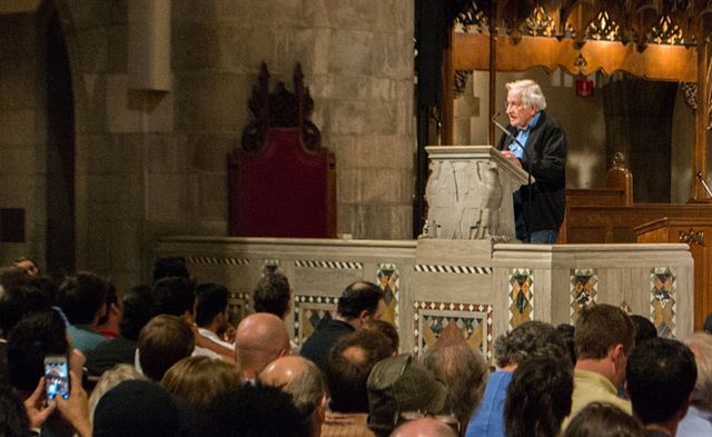 මැසචුසෙට්ස් තාක්ෂන විද්යා ආයතනයේ වාග් විද්යාව පිලිබඳ ගරු මහාචාර්ය හා එක්සත් ජනපද විදෙස් පිලිවෙත පිලිබඳ ප්රමුඛ පෙලේ විවේචකයෙක් වන නෝම් චොම්ස්කි, සැප්තැම්බර් 26දා චිකාගෝ සරසවියේ දී කතාවක් පැවැත්වී ය. “බලය සහ දෘෂ්ටිවාදය” යන මැයෙන් යුත් දේශනය සංවිධානය කරන ලද්දේ, ව්යාජ-වාම ජාත්යන්තර සමාජවාදී සංවිධානයෙහි (අයිඑස් ඕ) ප්රකාශන ආයතනය වන හේමාකට් බුක්ස්හි අනුග්රහයෙනි.