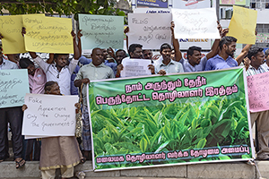 දෛනික වැටුප රුපියල් දාහක් කරන ලෙස ඉල්ලමින් විරෝධතා ක්රියාවල යෙදී සිටින වතු කම්කරුවන්ට සහය පලකරමින් සිකුරාදා කොලඹ දී උද්ඝෝෂනයක් පැවැත්වුනි. මෙම උද්ඝෝෂනයට 300 ට වැඩි පිරිසක් සහභාගි වූහ. මොවුහු වතුවල ප්රමානවත් වැටුපක් නොලැබීම සහ වතුකරයේ පවතින ආන්තික විරක්ෂාව නිසා රැකියා සොයාගෙන කොලඹට සංක්රමනය වී සිටින වතු කම්කරු තරුනයෝ හා රැකියා විරහිත කම්කරුවෝය.