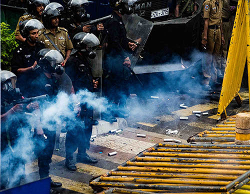 පොලීසිය කඳුලු ගෑස් ප්රහාර එල්ල කරමින්.පාගමන වැලැක්වීමට නිකුත්කර තිබූ අධිකරන නියෝගයක් පොලිසිය විසින් පාගමන අතරතුරදී උද්ඝෝෂකයින් වෙත ඉදිරිපත් කෙරුනු අතර ඔවුන් එය ප්රතික්ෂේප කරමින් ඉදිරියට ගමන්කල අතර කොල්ලුපිටිය මංසන්ධියේ යොදා තිබූ මාර්ග බාධක පෙරලා දැමීමට උද්ඝෝෂකයන් උත්සාහ කරනවාත් සමඟ පොලිසිය විසින් සිය ප්රහාරය මුදාහරින ලදී.