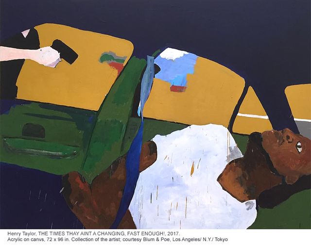 මිනසෝටා පොලීසිය විසින් වෙඩි තබනු ලැබීමෙන් පසු සිය කාරයෙහි ඇද වැටී සිටින ෆිලියැන්ඩ්රෝ කැස්ටිලීගේ පින්තූරයක් ඔහුගේ පෙම්වතිය විසින් 2016 ජූනි මස මුහුනුු පොතේ ප්රසිද්ධ කරන ලද අතර එහි නිරූපනයක් සහිත අවශ්ය තරම් වේගයෙන් වෙනස් නොවන කාල වකවානුව ! නමැති හෙන්රි ටේලර්ගේ චිත්රයට එරෙහිව විරෝධතා ඇති නො වීය. ඊට හේතුව, සමහර විට මෙහි දී කලාකරුවා කලු ජාතිකයකු වූ බැවින් විය හැකිය. ෂූට්ස් හා ටේලර් සමාන්යයෙන් එක සමාන වූ වස්තු විෂයක් භාවිත කිරීමට අතිරේකව ඒ දෙදෙනා විසින්ම නිර්භය ලෙස වර්න ගැන්වීමත්, නූතනවාදී මිනිස් රූප ශෛලියෙන් ඡායාරූපික මූලාශ්ර අර්ථකථනය කිරීමත් තුල උත්ප්රාසයක් පවතී. නොසතුට දනවනසුලු කාරනය වන්නේ, ස්ත්රී පුරුෂ සමාජභාවය හා වර්ගවාදය පිලිබඳ දේශපාලනයේ අනර්ථකාරී බලපෑම හා විකාරත්වයන් පුලුල් ලෙස ද්විවාර්ෂිකය තුල විද්යමාන වීමයි. කලා නිර්මාන ගැන කෙරී තිබුනු පැහැදිලි කිරීම් නිතර ම කියා පෑවේ “පුද්ගලිකත්වයේ සහ දේශපාලනිකත්වයේ අන්තර් ඡේදනය වීම” ලෙස පහ කරනු ලබන, තමන් හා තමන්ගේ අත්දැකීම්වලින් ග්රස්ථියට පත් වූ ඉහල මැද පන්තික ස්ථරයක් අතර ජනප්රියව ඇති පද මාලාවකි.
