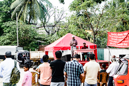 රැස්වීම ඇමතූ සසප දේශපාලන මන්ඩල සාමාජික පානි විජේසිරිවර්ධන, කම්කරුවන හා දුගීන් මුහුන දී ඇති ප්රශ්න වලට හේතුව ධනපති ක්රමයේ ඇති වී තිබෙන ලෝක පරිමාන අර්බුදය බවත් ව්යාජ-වාම කන්ඩායම් ඇතුලු ධනපති පක්ෂ මෙය කම්කරු පන්තියෙන් වහංගු කිරීමට උත්සාහ කරන බවත් පෙන්වා දෙමින් කතා කලේ ය. “මැතිවරනය තුල අනෙකුත් පක්ෂවල ප්රධාන තේමාව ‘දූෂන විරෝධී’ සටනයි. එහි ප්රධාන තැනක් ගෙන තිබෙන ධනපති සංස්ථාපිතයේ පක්ෂයක් වන ජනතා විමුක්ති පෙරමුන (ජවිපෙ) කියන්නේ දූෂනය නැති කිරීමෙන් ධනපති ක්රමය තුල ප්රශ්න විසඳා ගත හැකි බවයි. ධනවාදය රටක් රටක් පාසා පෙරලා දමා ජාත්යන්තර සමාජවාදය තහවුරු කිරීමකින් තොරව මහජනයාගේ එකදු සමාජ අයිතියක් දිනා ගැනීමට හා ලෝක යුද අන්තරාය නවතා ගත නොහැකියි” විජේසිරිවර්ධන ප්රකාශ කර සිටියේ ය.