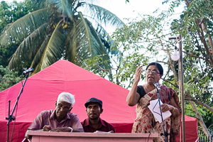 ෆරීඩා ඉම්රාන් සසප සාමාජිකා ෆරීඩා ඉම්රාන් දෙමල බසින් සභාව ඇමතුවාය. කොලොන්නාව ප්රදේශය තුල දශක ගනනාවක් පුරා සසපටත් එහි පූර්වගාමියාවූ විප්ලවවාදී කොමියුනිස්ට් සංගමයටත් (විකොස) තිබෙන වාර්තාව සිහිපත් කලාය. ඉම්රාන් එම ප්රදේශයේ දීර්ඝ කාලීන අරගලයේ යෙදී සිටි පක්ෂයේ සාමාජිකාවකි.
