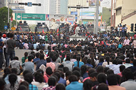 උද්ඝෝනයට කොලඹට රැස්වූවන්ගෙන් කොටසක්ශ්රී ජයවර්ධනපුර විශ්ව විද්යාලයේ සිට කොල්ලුපිටිය මංසන්ධිය දක්වා වූ පා ගමනේදී, සයිටම් පුද්ගලික වෛද්ය විද්යාලය ස්ලිට් ආයතනය යටතේ වෙනත් නමකින් ආරම්භ කිරීමට, රාජ්ය මර්දනයට, පාසල් පෙල පොත් සහ නිල ඇඳුම් කප්පාදුවට, “සුරක්ෂා සිසු රක්ෂනයට” හා ”අධ්යාපනය විකිනීමට” එරෙහිව ඔවුහු සටන් පාඨ හඬ නැගූහ.