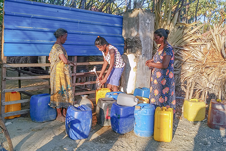 “අපේ මිනිස්සු කයිට්ස්වලට බෝට්ටුවෙන් ගිහිල්ල පිරිසිදු කරපු වතුර අරන් එනව. ඒත් ඒක හැම වෙලාවෙ ම නැහැ. බලා ඉන්න සිද්ද වෙනවා. අපිට හම්බ වෙන්නේ ලීටර් 10ක් විතර” යි එන්. වෛද්යලිංගම් කීවේ ය.