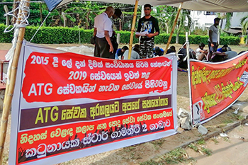 කටුනායක නිදහස් වෙලඳ කලාපයේ ඒටීජී සිලෝන් අත් වැසුම් නිෂ්පාදන කර්මාන්ත ශාලාවේ වෘත්තීය සමිති ක්රියාකාරීන් හය දෙනෙකු රැකියාවෙන් දොට්ට දැමීමට එරෙහිව එහි දහසක් පමන කම්කරුවෝ මේ මස 12 සිට අඛන්ඩ වර්ජනයක නිරත වී සිටිති.