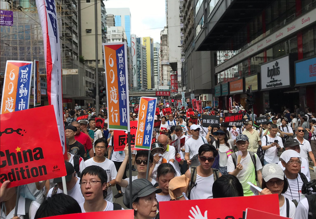 සංවිධායකයින්ට අනුව, මිලියන එකකට වඩා පුද්ගලයෝ (වෙනත් වචනවලින් පවසතොත් හොංකොං සමස්ත ජනගහනයෙන් හත්දෙනෙකුට එක් අයෙක්) ඊයේ විරෝධතාවට සහභාගී වූහ. පුවරු හා බැනර්වල “චීන උදර්පනය එපා” හා “කැරී ලැම් ඉල්ලා අස්වෙනු” යන සටන්පාඨ ඇතුලත් වුනි. ප්රධාන විධායක නිලධාරී ලැම් හොංකොං හි ප්රධාන නිලධාරියා වන අතර ඒ අනුව නීති සම්පාදනය සඳහා වග කිව යුතු ය.