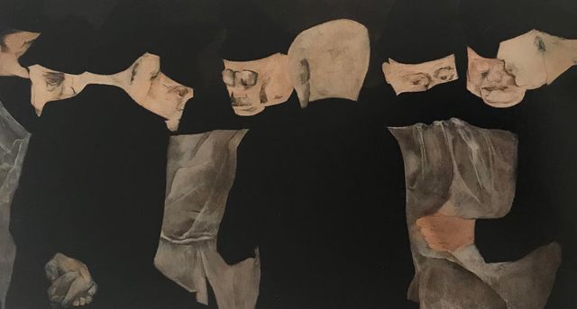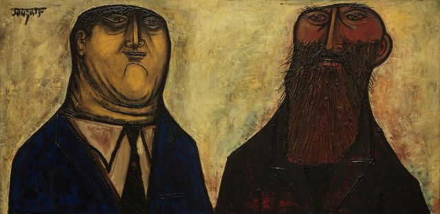ඒ මිනිස් රූප දෙකම පිටත රූප සීමා පැහැදිලිව නිරූපනය වන පරිදි බර, රලු, ඔප සහිත කලු රේඛාවලින් සිතුවම් කර ඇති අතර මෙ තුල සුසාගේ පසුකාලීන නිර්මානවල - ප්රචන්ඩ ලෙස ඇල ඉරි මගින් ද්වීරේඛනය කරන ලද ඔහුගේ ස්ත්රීන්ගේ සහ අපරූපී ක්රිස්තු රූපයන්ගේ - පූර්ව සෙවනැල්ල දැකිය හැකි වේ. අවෛෂයික, ලා කොල වර්න සහ ජුගුප්සිත කසා වර්නයෙන් වියමන් වූ පසුතලයට එරෙහිව නැගෙන ඔවුන් සහ බර රේඛාවන් හා සෙවනැලිවලින් රාමුගත වුනු, ඔවුන්ගේ ඇස්, කලා රූපයේ මධ්යය හරහා බලා සිටිති. සූසාගේ චිත්ර කලා, නව ඉන්දියාවේ මුල්බැස ගත්, පරපෝෂිත ධනේශ්වරය හා කම්කරු පන්තිය අතර පන්ති විෂමතාවන්ගේ නග්න ප්රකාශනයෝ වෙති.