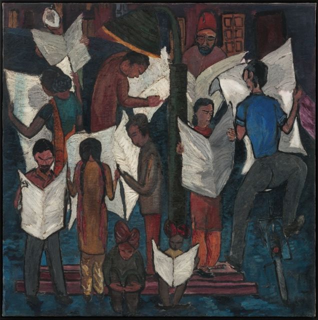 ක්රිෂෙන් ඛන්නාගේ ගාන්ධිතුමාගේ මරනය පිලිබඳ ප්රවෘත්තිය (1948), දක්ෂිනාංශික හින්දු ජාතිකවාදියකු අතින් ඝාතනයට ලක්වීමේ ආරංචිය ඇතුලත් පුවත්පත් පහන් කනුවක් යට කියවන විවිධ පසුතලවලින් පැමිනි ඉන්දියානුවන්ගේ ශෝකී නිරූපනයකි. කන්ඩායම්වාදී ආතතීන් පිලිබඳ ඛන්නාගේ සිතුවිලි මතු කරමින්, කිසිවකු එක් ව කියවන්නේ හෝ සාකච්ඡා කරන්නේ නැති නමුත් එකිනෙක තැනැත්තා ඔහුගේ හෝ ඇයගේ හෝ පුවත්පත අතැ’තිව සිතයි.
