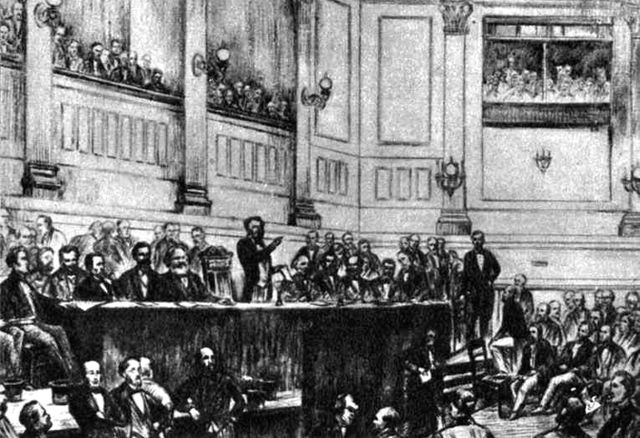 1864 දී මාක්ස් හා එංගල්ස්ගේ ක්රියාකාරී සහභාගීත්වයෙන් යුතුව පිහිටුවන ලද පලමුවැනි ජාත්යන්තරය ප්රාරම්භක ස්වභාවයේ එකක් විය. එය අනාගත වර්ධනයන් පිලිබඳව පූර්වාපේක්ෂාවෙන් පසුවෙමින්, එම වර්ධනයන් දේශපාලනිකව හා න්යායිකව සූදානම් කලේය. කම්කරු පන්තිය විසින් බලය අල්ලා ගැනීමට දරන ලද ප්රථම වීරෝදාර ප්රයත්නය වූ පැරිස් කොමියුනය මර්දනය කිරීමෙන් අනතුරුව, 1870 ගනන්වලදී එය විසුරුවා හරිනු ලැබීය.