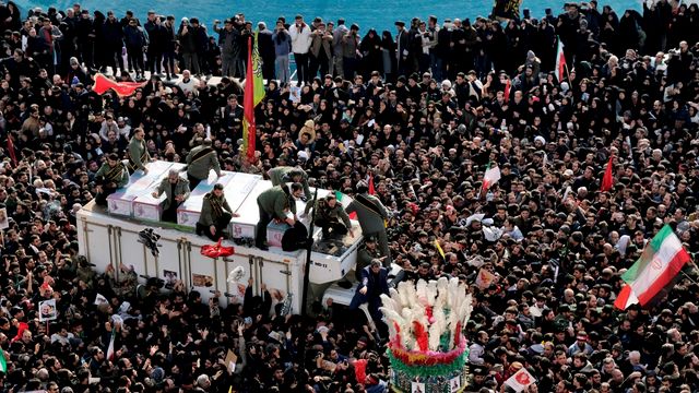 සුලෙයිමානිගේ අවමංගල්ය පෙරහැර, නැගෙනහිර ඉරානයේ කුසෙස්තාන් හා පසුව උතුරු ටෙහෙරානයට ද යාමට කලින් බැග්ඩෑඞ් සිට දකුනු ඉරාකය හරහා ගමන් කල අතර, ෂියා ඉස්ලාමයේ ශුද්ධ නගර වන නජාෆ් සහ කර්බාලාහි නතර විය. ජනවාරි 3 වන දින එක්සත් ජනපද ඩ්රෝන් මිසයිල ප්රහාරයේ තවත් ගොදුරක් වූ ඉරාක මිලීෂියා නායක අබු මහඩි අල්-මුහන්දිස්ගේ හා සුලෙයිමානිගේ මිනී පෙට්ටි, ශෝකයට පත් විශාල පිරිසකගේ හිස් මතින් යවනු ලැබීය.