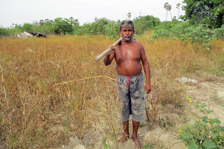 யாழ்ப்பாணத்தில் வட்டுக்கோட்டையை சேர்ந்த 38 வயதான ஒரு விவசாயி எஸ். விக்னேஸ்வரன், இந்த ஆண்டு அறுவடை எதிர்பார்த்து 2016ம் ஆண்டு பருவகாலத்தில் பல ஏக்கர் விதைத்ததாக தெரிவித்தார். "மழை இல்லாததால் நான் விளைச்சலை இழந்துவிட்டேன். என் பசுக்களுக்கு தின்பதற்கு புல் இல்லை. அவை இறந்துவிட்டால் அது இன்னொரு பேரழிவாகும். அரசாங்கம் 8,500 ரூபாய் அற்ப இழப்பீடு வழங்கியது. நாங்கள் ஒவ்வொரு ஆண்டும் அரசாங்கத்திற்கு வரி செலுத்துகிறோம். ஆனால் இந்த ஆண்டு, எங்கள் தேவைக்கே அரிசி இல்லை," என்று அவர் கூறினார்.
